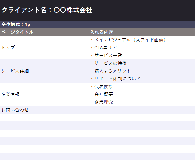 どのページにどんな内容を入れるか整理する時に有用です。